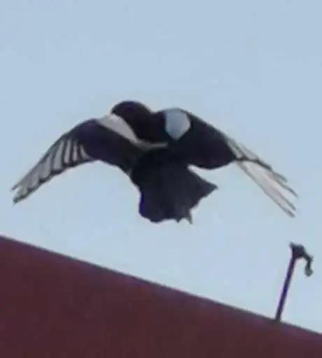 喜鹊时而掠过屋顶飞行