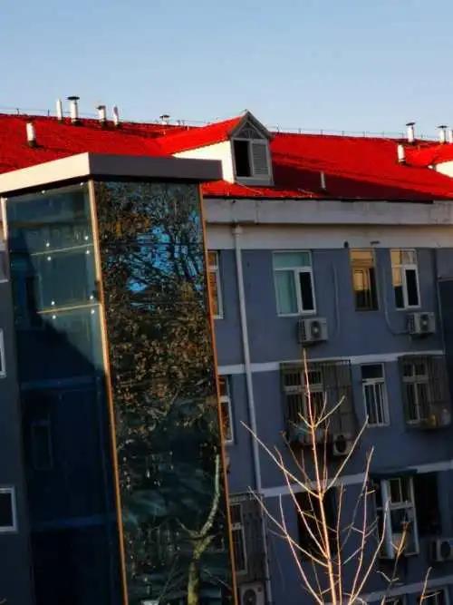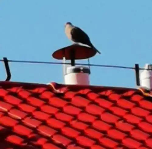 在南窗户前看见它站在红瓦屋顶上张望