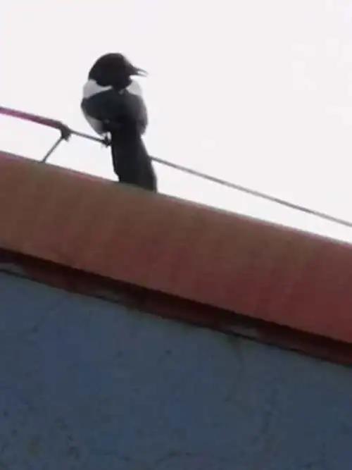 喜鹊在房顶上鸣叫