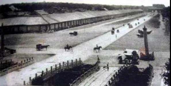 天安门金水桥前原来有一条宽宽的石板路,称之为御道,御道两侧是砖铺的宽阔场地,场地再往外是两排老房,称之为千步廊,千步廊外面是高高的红墙。我们去的时候,绝大部分的拆除工作已经完成,我们的任务是为新开辟的天安门广场平整地面。左右两边的红墙和南边的三座门依然保留着。