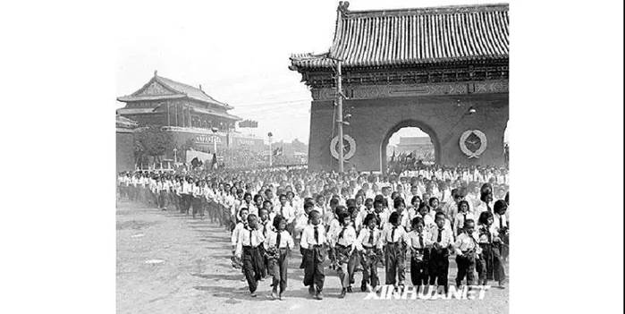 (五)自1949年起,此后我们每年都参加五一和十一的游行。天不亮在学校集合,兴高采烈地排队唱着歌走到天安门,先来到东单,大队人马按次序等待着,然后依次通过天安门,高喊口号接受检阅。晚上又早早来到天安门前参加歌舞联欢……。