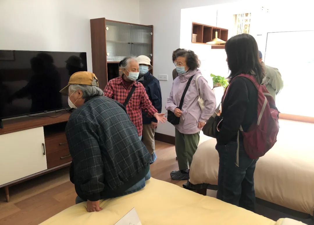 参观中,老同志们对新华家园的适老化、智能化设施非常感兴趣。“他们这儿环境真好!我特别喜欢这里的地面,全程没有台阶,又防滑,非常适合老年人!”“这里的床垫坐上去很舒服,据说是智能床垫,夜间上厕所离床时间长了还会报警,大大提高了个人安全保障。”