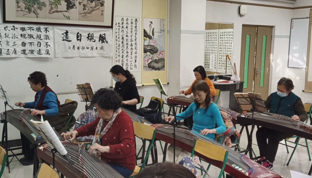 老同志们在古筝课上专注认真、苦练技术,丝毫不输正值青年的年轻人。在这里,大家都有着共同的目标,那就是不断精进琴技;大家还有一位专业且负责的好老师,认真耐心地指导大家正确的坐姿、指法和仪态。在这里,志同道合者,互相帮助,切磋琴技,交流心得,生活更加丰富多彩,艺术趣味亦盎然也。