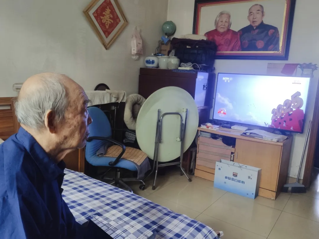 北航离休干部、99岁的抗战老兵杨平,穿戴整齐,胸前佩戴好中国人民抗日战争胜利80周年纪念章,早早守在电视机前。当《歌唱祖国》的歌声响起,老人情不自禁地跟唱起来。她说:年少时,我“做革命工作,不能讲报酬”,年老后,我将“坚定中国特色社会主义道路不动摇”。