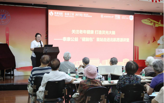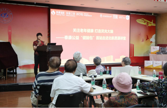 7月4日上午,由北京泰康溢彩公益基金会泰康之家专项基金支持的“活出年轻大脑健康包”捐赠活动首站落地北航,活动由北航离退休工作处、北航社区居委会共同主办,北航社区养联体组织承办。北航老同志、北航人文社会科学学院(公共管理学院)的大学生志愿者、泰康溢彩志愿者、恒远社工志愿者等100余人参与了活动。