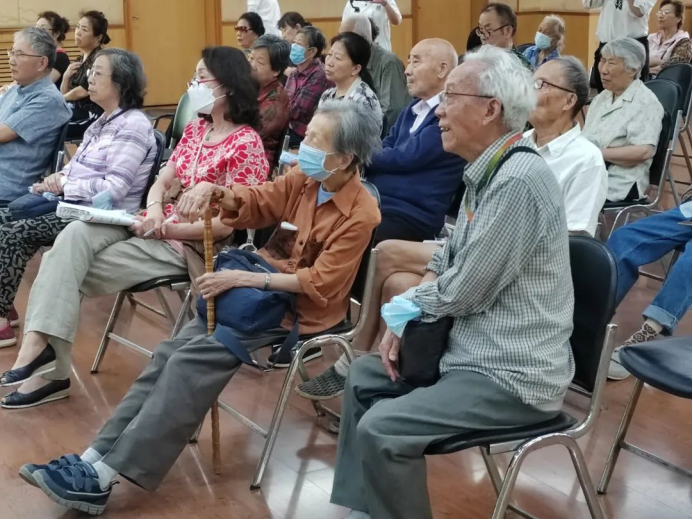 台下老同志认真听讲,有的托着下巴边听边思考,有的埋头快速做笔记,还有的互相靠近小声交流。大家对阿尔茨海默症的认识在不断地加深。