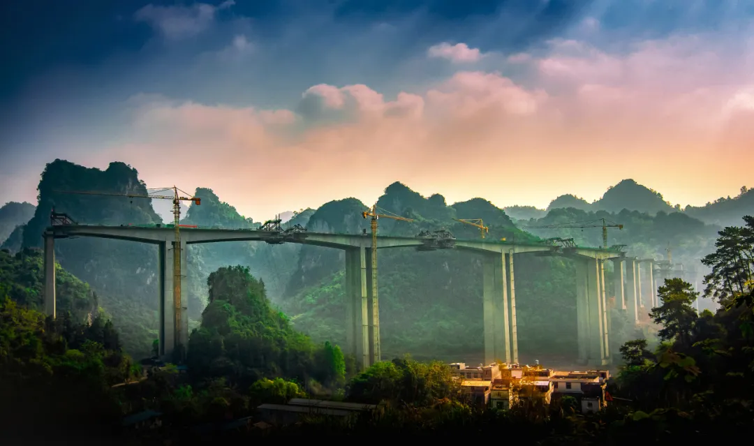 这张照片都是在路上拍的,没有具体景点,是赶路时碰到了架桥铺路。我想起早些年,我们到有些地方需要绕道,车坏了也不容易找到维修厂。后来这些地方都修了新路、架了新桥。我开的车就是一般的面包车,但现在没有我去不了的地方。山区里面盘着山的那种小路都修到村里面去了,村里有卖货车,大喇叭喊着肉、食品、百货,当地人买食品和生活用品很方便,村里还有公园、养老机构等,人们的生活水平越来越高了。
