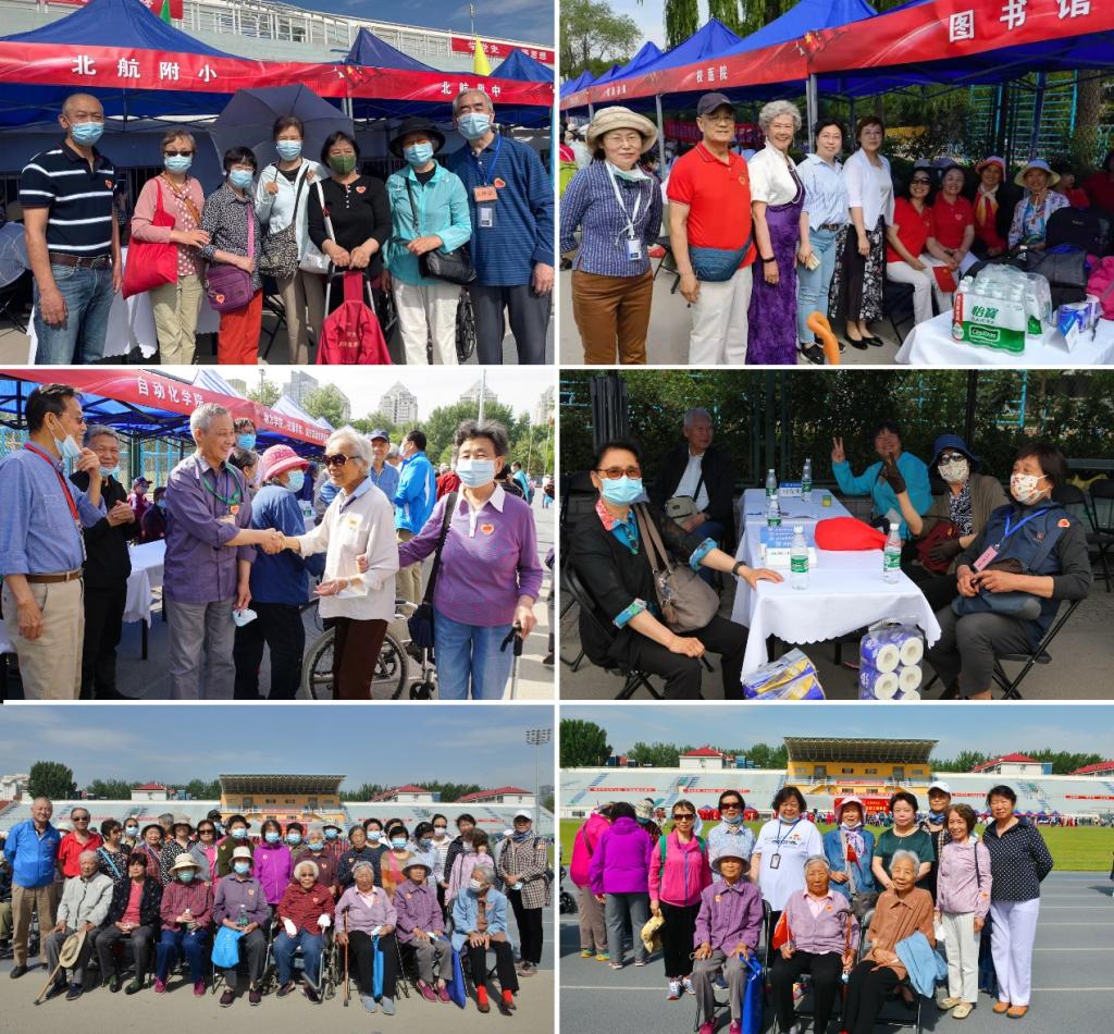 嘉年华活动现场,不仅为老同志们提供了风采展示和相互交流的平台,也为各原单位领导慰问老同志提供了机会。在运动场东、西、北侧分别搭建了“原单位帐篷”,原单位的负责人来到帐篷内慰问、关心老同志,共叙北航情。