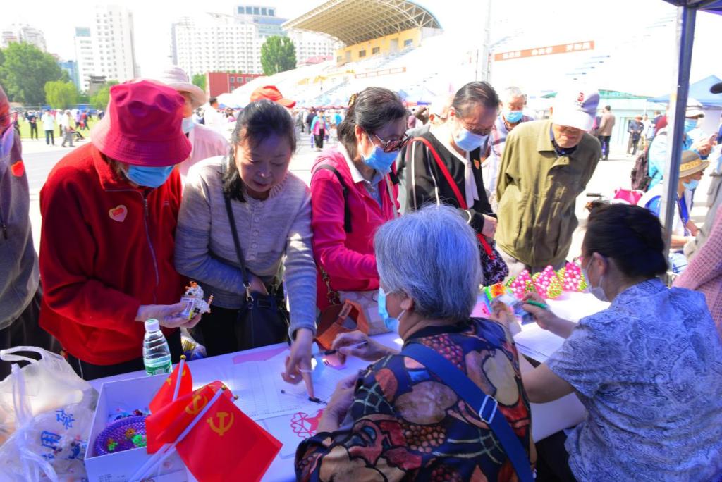 手工协会的老同志还进行了现场义卖和赠送活动。