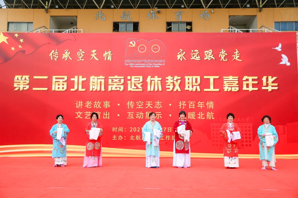 为迎接庆祝中国共产党成立100周年,老同志准备了丰富多彩的文体节目,展现阳光心态,抒发对党、对祖国、对北航的热爱之情!现场观众兴致勃勃地观看了文艺演出。
